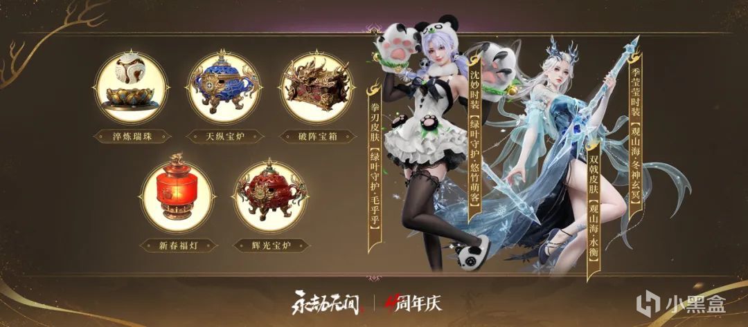 週年慶期間,輝光寶爐、淬鍊瑞珠、天縱寶爐、破陣寶箱、新春福燈將限時返場,還有季瑩瑩時裝【觀山海·冬神玄冥】、拳刃皮膚【綠葉守護·毛乎乎】、雙戟皮膚【觀山海·水衡】等熱門外觀均以直售形式直接返場,前往商城-外觀返場處即可購買,如果有心儀的外觀,趕緊趁此機會拿下吧!