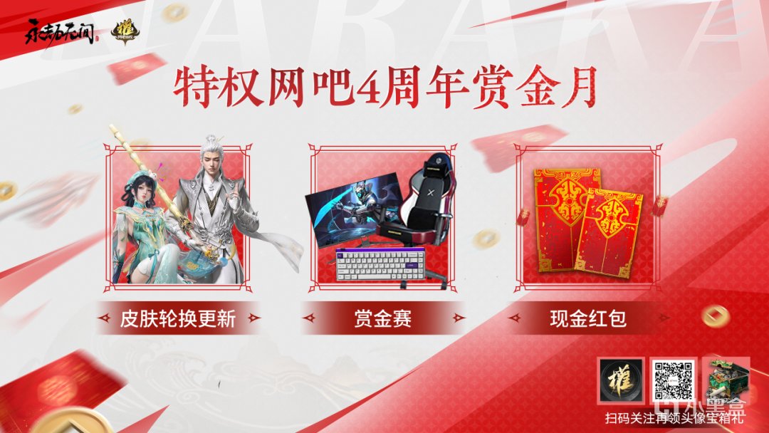 週年慶期間,就來特權網吧打劫!免費體驗網吧專屬可升級雙節棍外觀,還有賞金月活動,週週有比賽,全民可參與,最高可兌換價值千元的品牌外設!至尊特權網吧每天還有百元現金紅包抽取,打劫還能賺一筆~