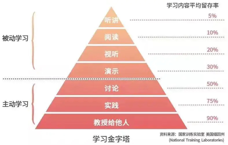 所以费曼学习法,就是通过教授他人的形式来学习,这种效率是最高的(其他方式的效率见图)。