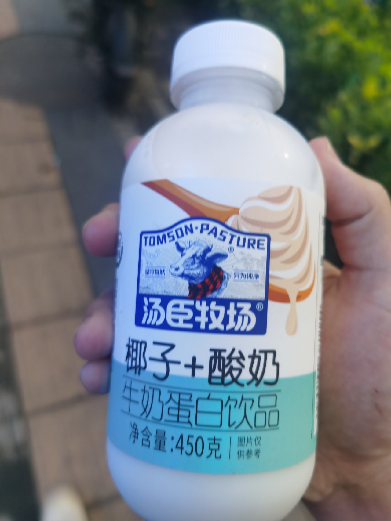 购入价格6r(450ml),打开盖子之后能闻到一股很香的椰子味,而且入口奶香味也是十分浓郁,因为是加了酸奶,所以喝起来酸酸甜甜的,咽下去之后喉咙会有一种粘稠的感觉,味道和口感有一点像营养快线吧,看了一下配料表,确实不是牛奶而是牛奶饮料,个人认为和营养快线不相上下,但是价格上会贵一些