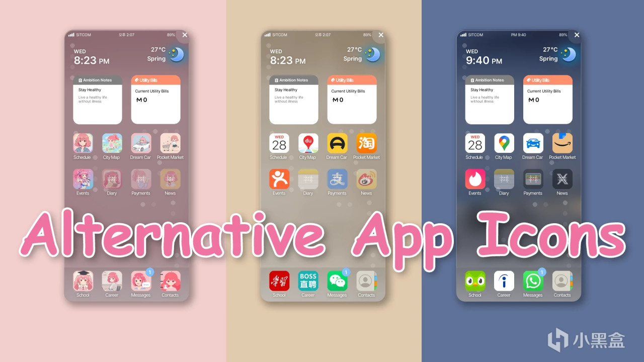 功能:将手机上的默认 App 图标替换为 3 组不同的图标。