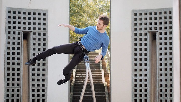早年间学习过杂技、舞蹈和中国园林设计,现在他专注于开发能让人体验失重感觉的艺术装置——这个假肢式的未来主义雕塑叫"月亮"。
