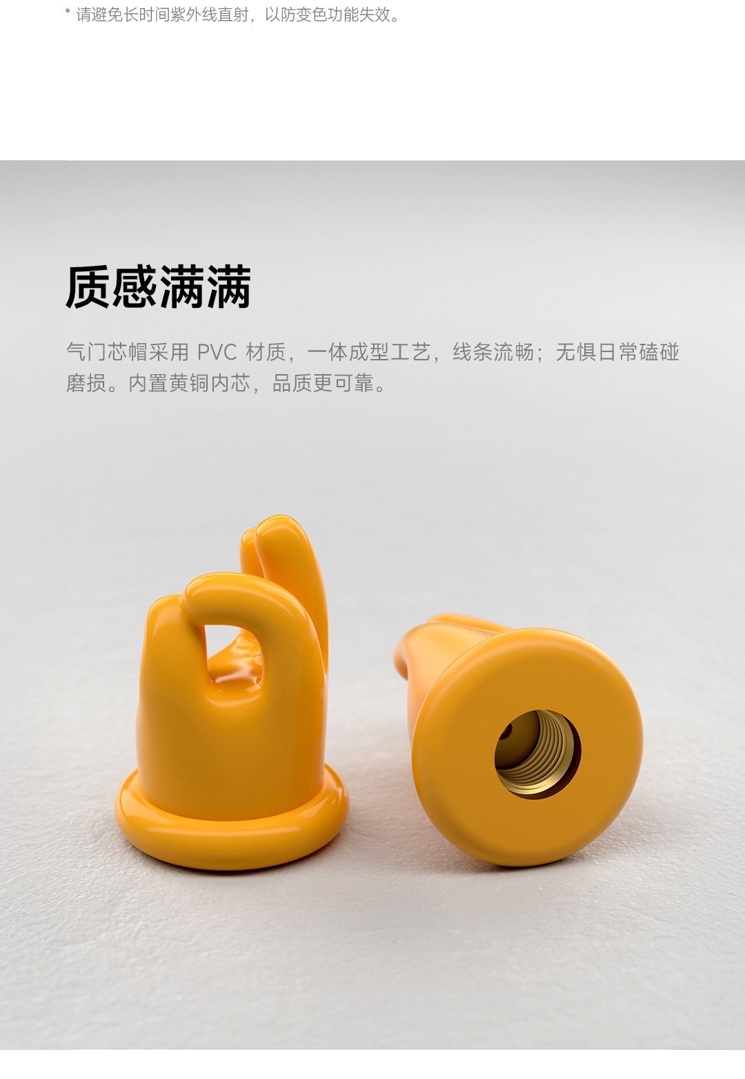 并且还添加了感光粉,阳光照射下气门芯帽会迅速变黑,失去光照后能快速复原。
