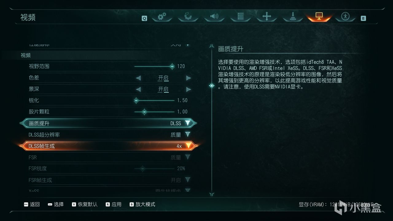 在加入路径追踪之前,《毁灭战士:黑暗时代》已经在图形设置内集成DLSS技术以及多帧生成选项,DLSS画质提升就包括DLAA、质量、平衡、性能等多个档位,同时能调节锐化值,而基于Transformer模型最高实现4X插帧。