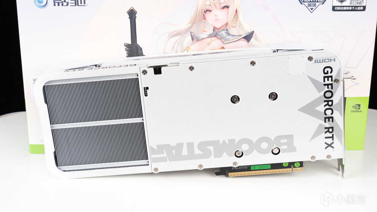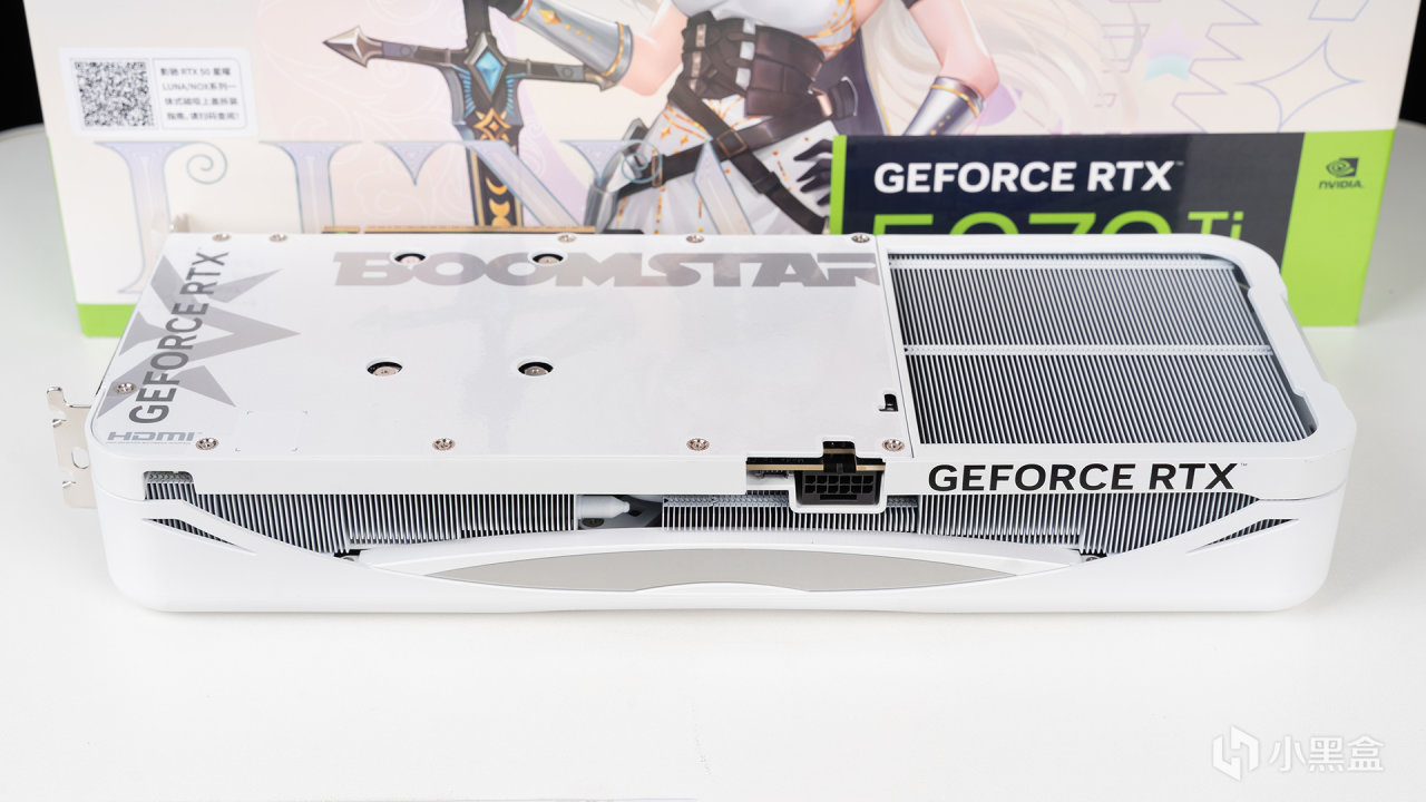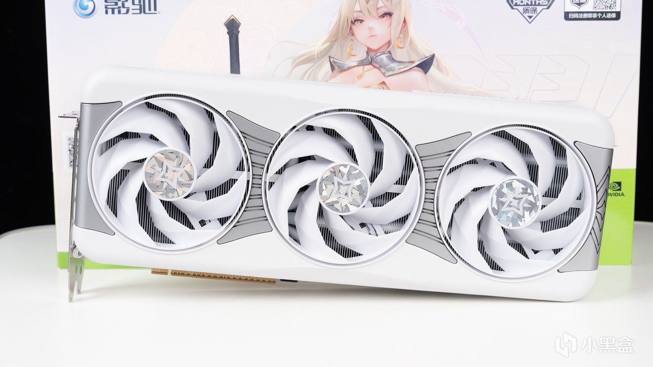 本次测试显卡来自影驰的RTX 5070 Ti星曜LUNA OC,包装就能看到其全新星曜娘IP,白色版本是月亮女神LUNA,黑色版本则对应黑夜女神NOX,设计还挺有心思的,包装右上方标注了醒目的42个月质保,且支持个人送保,比主流36个月会多6个月也算是一点优势吧。