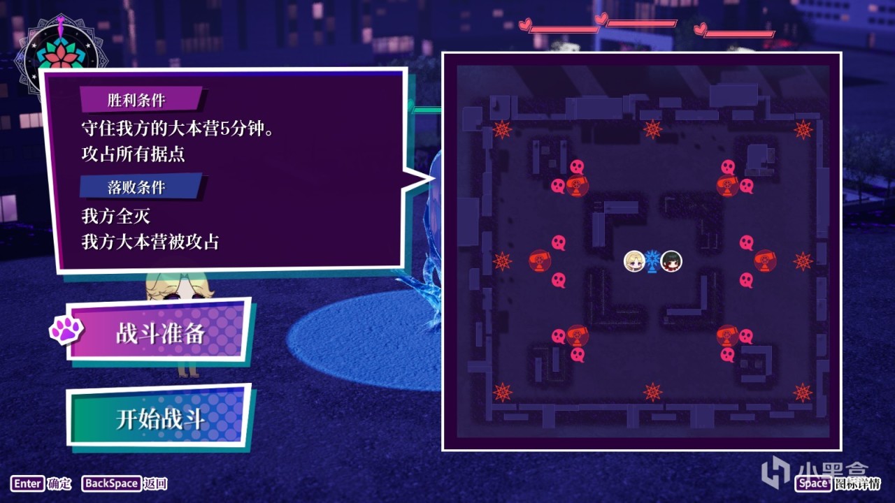 操縱各個q版女角色,在風格各異的地圖上摧毀敵方據點並佔領以觸發各種buff,最終摧毀敵方大本營/最終boss。