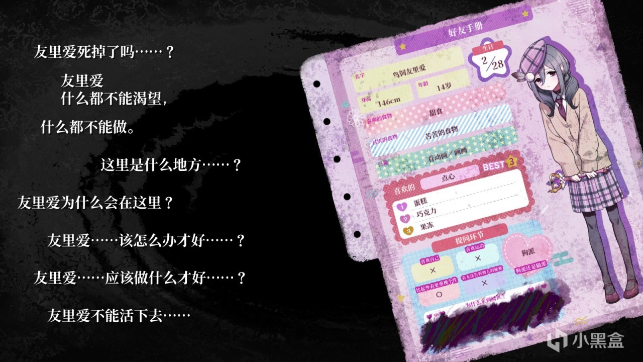 遇到的第四個角色——友裏安,就更慘了,出生是線下當浮力機的父母意外生下來的,在家裏自然是不受待見,家暴被菸頭燙和沒飯喫那是常有的事情,因爲沉默寡言+不能洗澡+營養不良,在學校也不受老師同學的待見.....