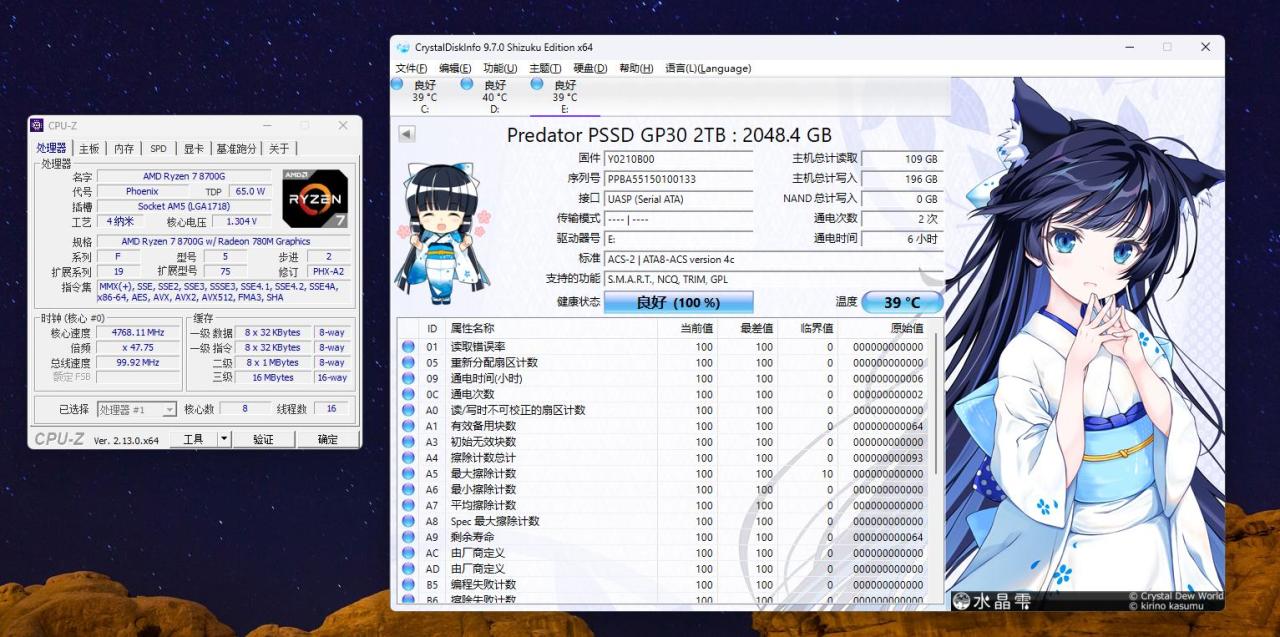 ▲ 採用 Crystal Disk Info 也能正確識別宏碁掠奪者 GP30 2TB 。有趣的是,當我對 PSSD 進行讀寫操作後,CDI 也會即時記錄寫入與讀取量。