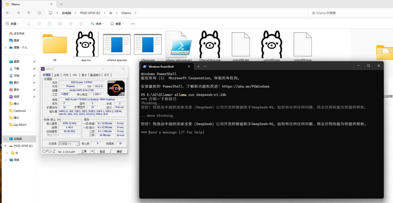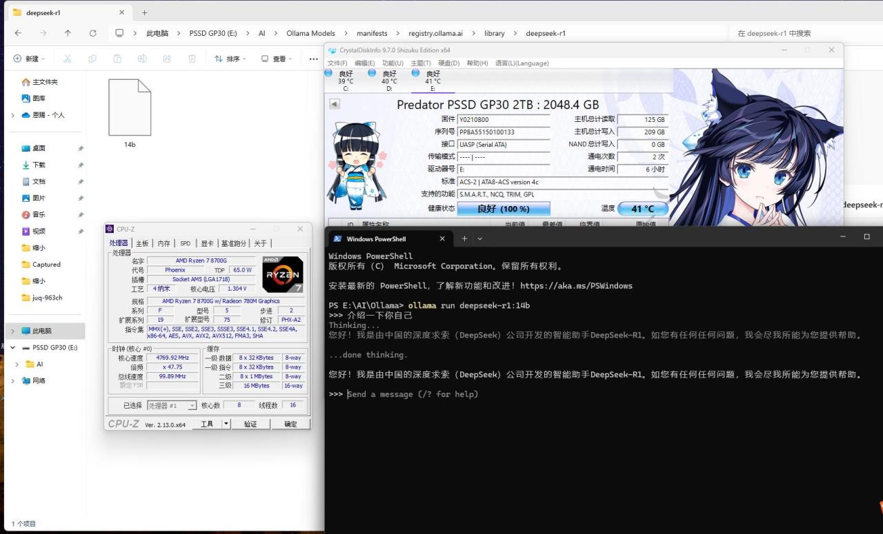 ▲ 換到租房電腦的 8700G 上,我們來試試宏碁掠奪者 GP30 2TB 還能繼續用上 DS R1 14B 嗎?