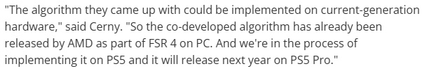 在接受《Tom's Guide》採訪時,馬克·塞爾尼將這項即將問世的技術描述爲"現有PSSR的即插即用替代方案"。他坦言,原本預計此類技術突破需要數年研發週期,但得益於雙方合作,僅用短短几年就開發出顯著優化的算法,並計劃於2026年正式發佈。"這絕非算法的簡化版,"馬克·塞爾尼強調,"我們將爲PS5 Pro帶來完整版的聯合開發超分辨率技術。"