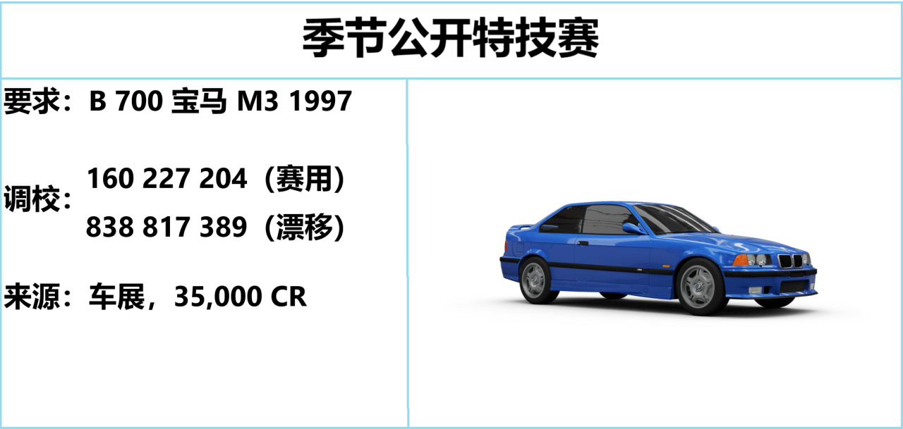 本週的特技要求完全一致,統一用這輛 寶馬 M3 來完成,先去完成第二場錦標賽就能白嫖它。
