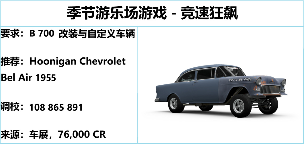 注:FH5 的終極考驗、季節遊樂場均爲三局兩勝制,後者無論輸贏均能拿到獎勵,切勿中途退賽。