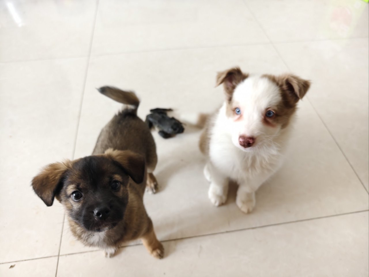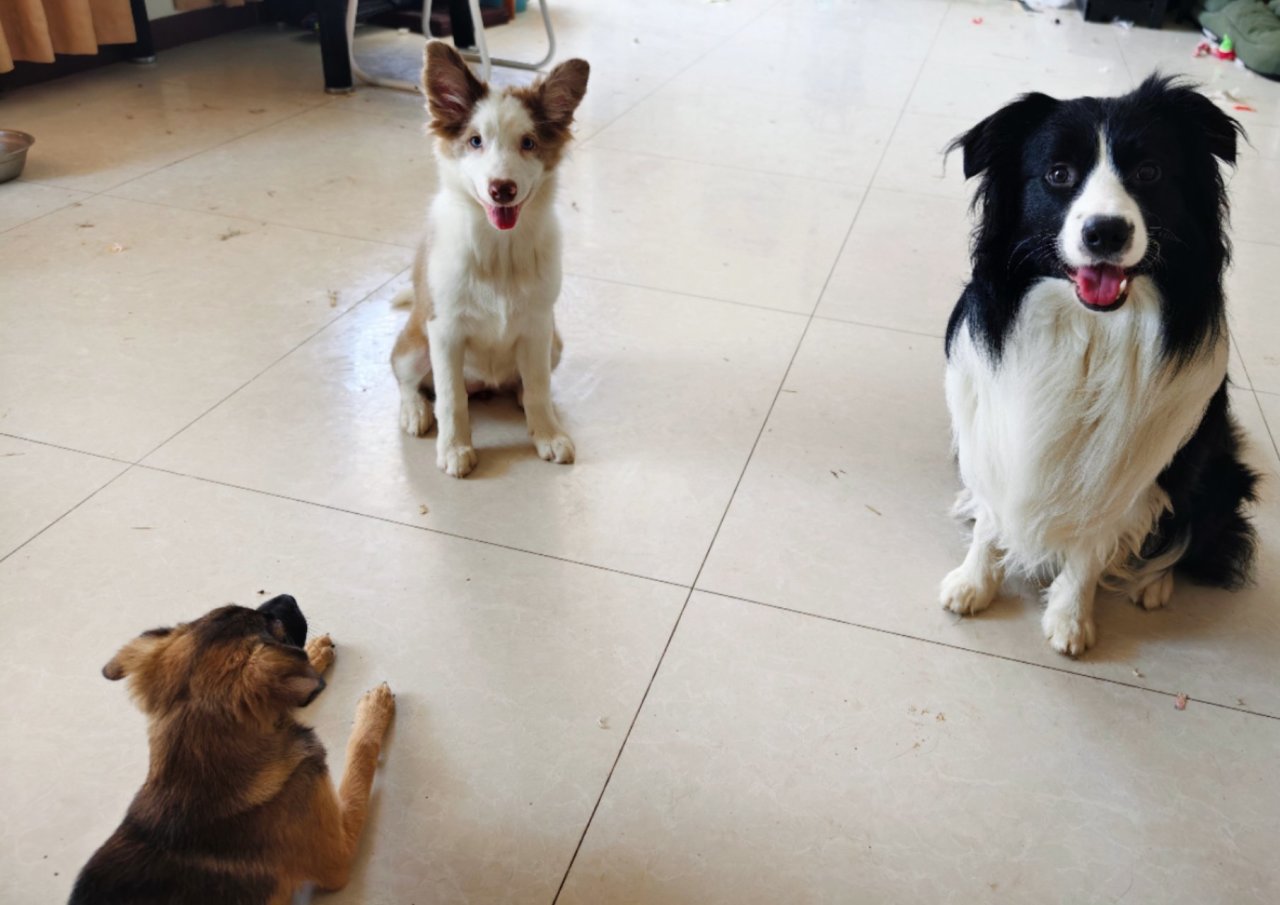 今天过完年,我又领养了小土狗千雪,还抱回来另一只边牧,千雅。