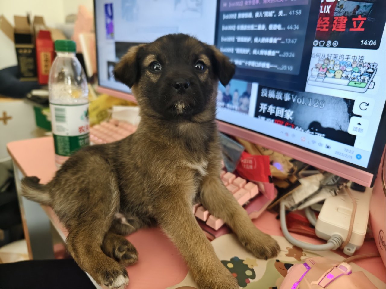 砍了半个小时的价,终于抱着小狗回家了。