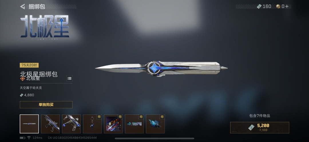 新近戰武器“北極星”捆綁包也已上線,包含一款刀皮,兩款槍皮和若干小裝飾,有一說一槍皮的質感還是很不錯的!