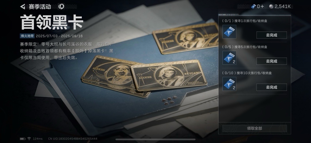 遊戲中還加入了“首領黑卡”,可以在零號大壩和長弓溪谷這兩張地圖中獲得。黑卡不能帶出對局,只能在當局使用,可開啓任意房間!