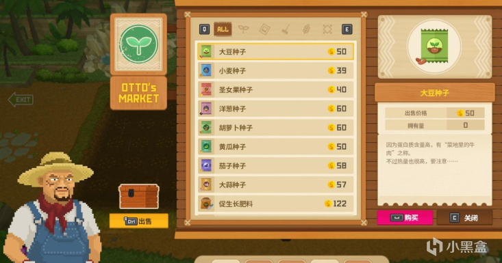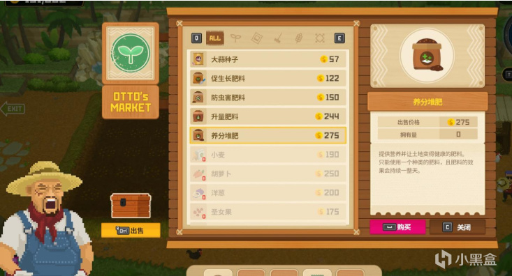 商店总共会解锁8种种子,我推荐前期优先种小麦和大蒜,后期可以再补着种些黄瓜和大豆,用以咖喱派对和黄瓜派对。