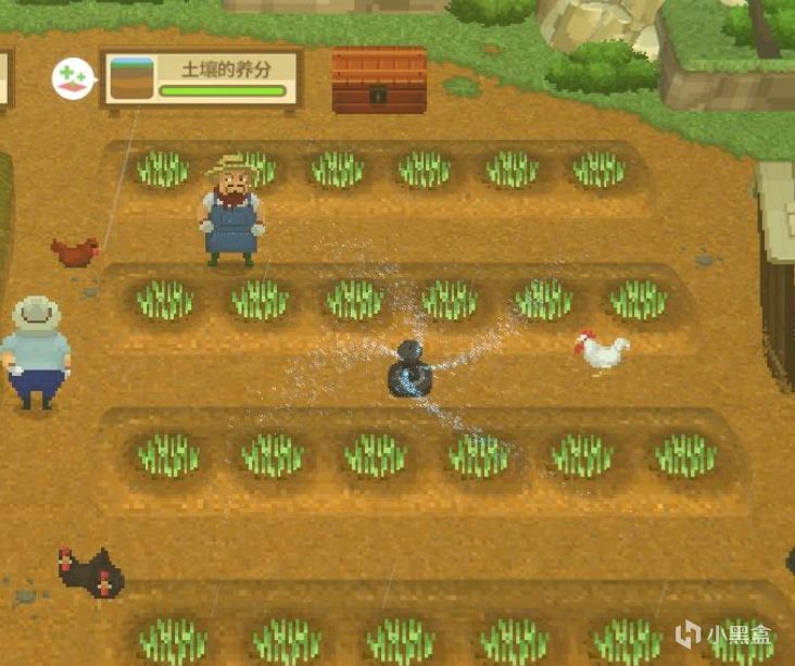 虽然水壶升满之后虽然能解锁自动喷淋,但是还是需要对24个格子播种,收割,重复48次。