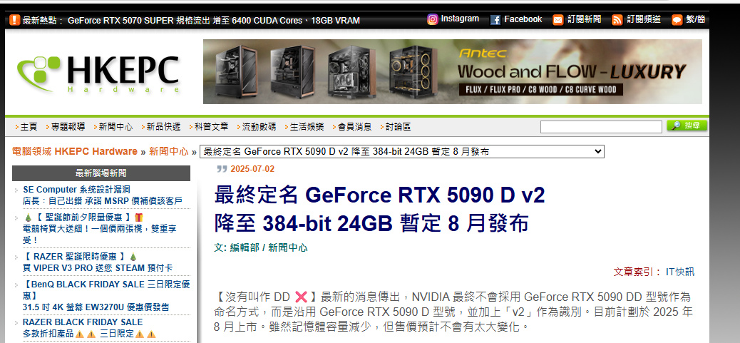 而後續,臺媒Benchlife在其他文章中也對“RTX 5090DD”帶過一筆,透露預計發售時間爲8月。