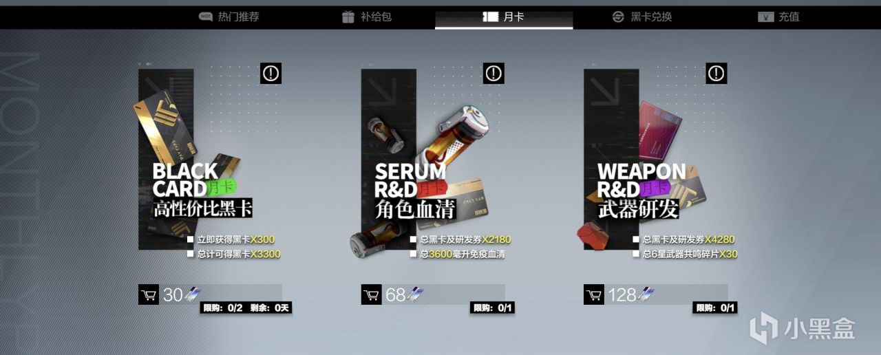 采购系统是购买皮肤和礼包的界面。若考虑氪金,月卡是首选,其次是礼包,最后再选择直接充值(首次充值有翻倍,但性价比仍较低)。充值获得的虹卡与黑卡兑换比例为 1/10,不太划算。