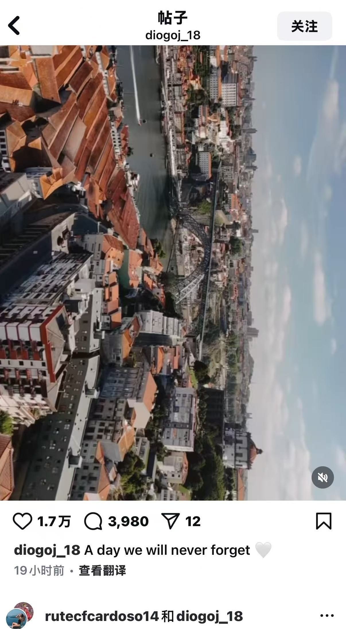 此前,利物浦前鋒若塔更新Instagram並曬出了自己婚禮上的照片:“2025年6月22日,是的,永遠。”