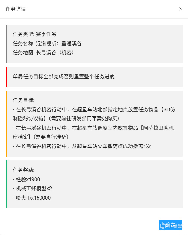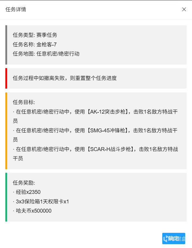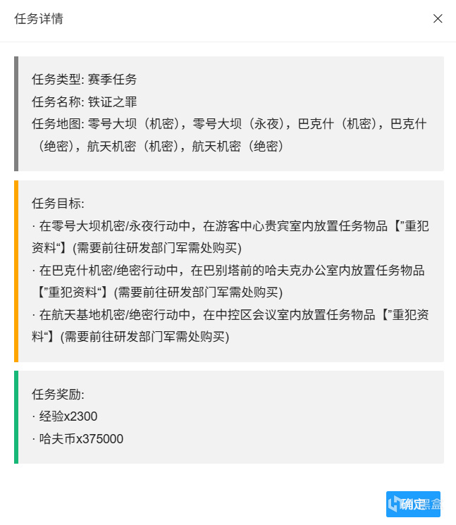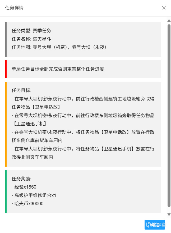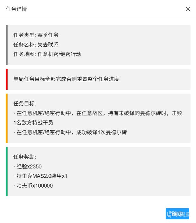 本文一共摘錄了S5賽季任務中的71個(全73個),後續特情處造子彈的任務和類似上賽季最後一個任務諾克斯破壁的任務會放在評論區置頂。