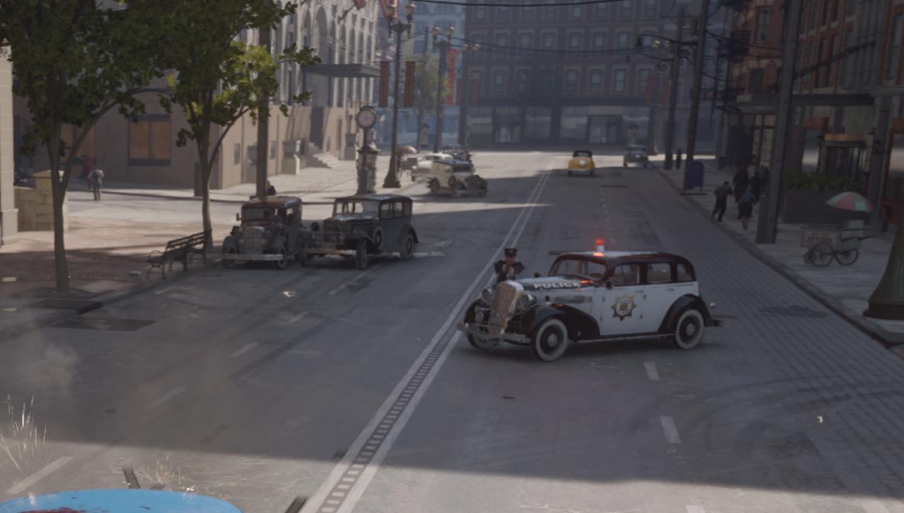 在進行違法事件被目擊到後,周邊民衆會立刻向警方報案,根據遊戲內的語音來看,他們很可能是就近找了一個電話亭向警方交代情況(畢竟那個年代的無線電技術還沒發達到可以隨時上報狀況,但你在荒郊野嶺也能聽見警方流暢的無線電交流,這在30年代實在是不太現實。)報案完成後,你違法時最後被目擊的地點會出現一個標記,警方將會派出一輛巡邏車前往標記位置進行查看。