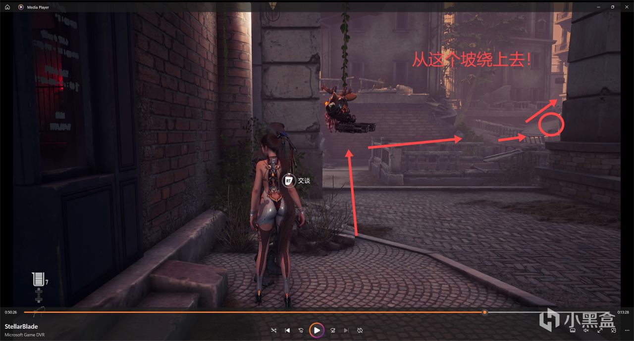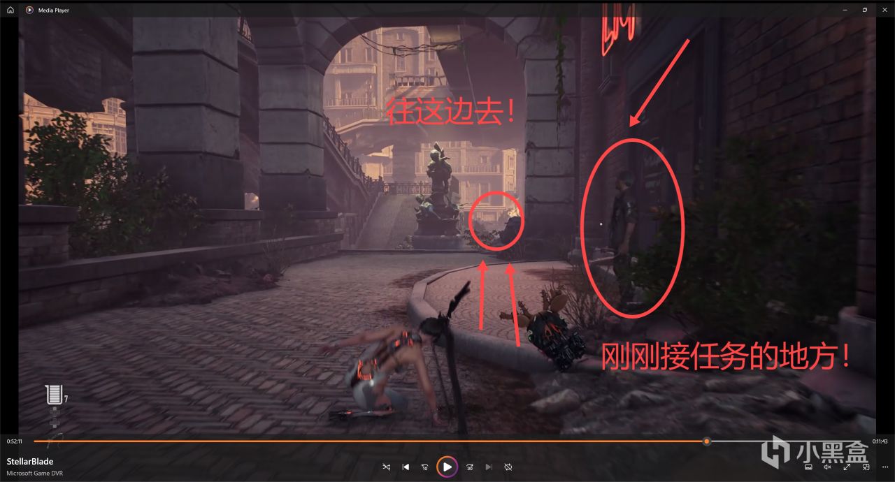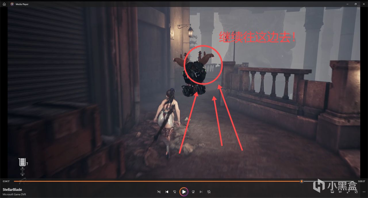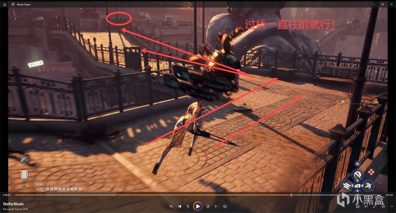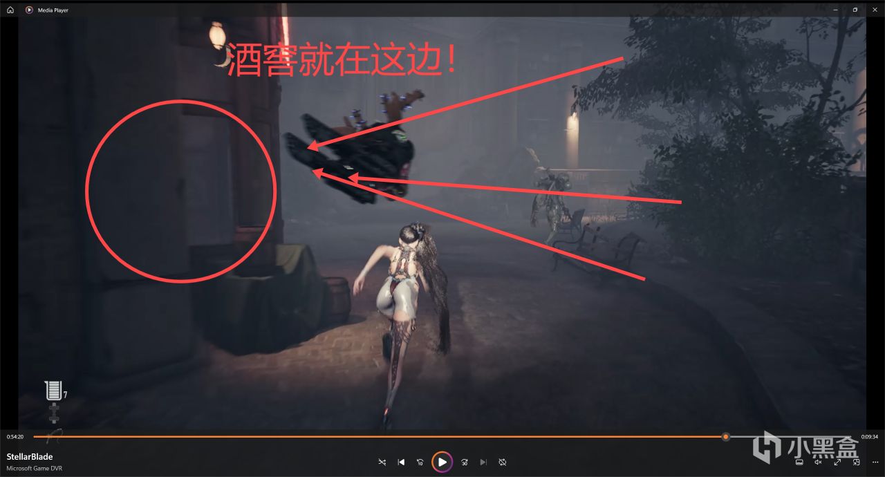 然後我們原路返回,回到剛剛接取【終結噩夢】的地方,我們往反方向走,然後從右邊圈圈的地方跳下去!