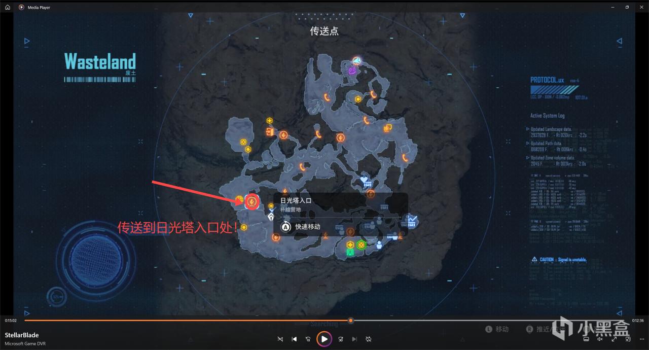 接取任務以後以後,我們就要前往廢土了,順便把攢了不知道多久的任務【密碼招募專家】也完成一下,先傳送到廢土日光塔入口營地!