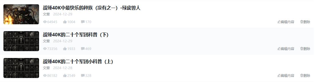 然后我就滚回家了,也是在躺在家里这段时间,我的创作灵感像东北磕头机钻破了最后一层土突破到石油层一样开始爆发,开始写上战锤40K和战地一系列了(已夭折),大家应该也就是这时候认识的我。