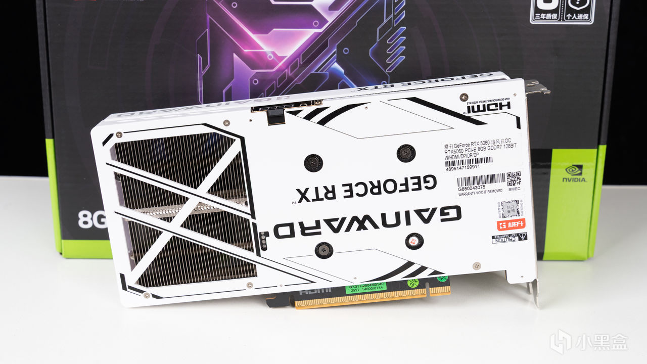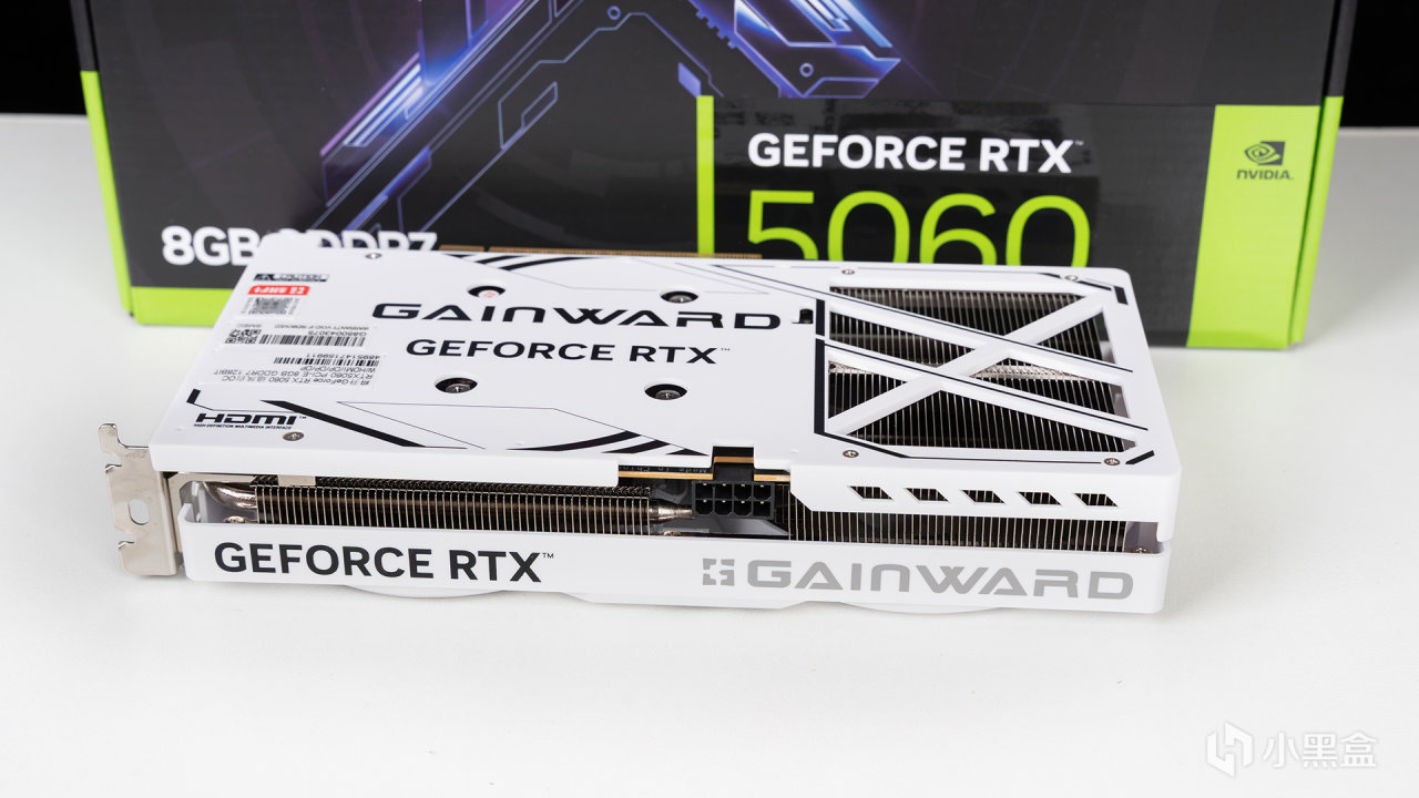 耕升RTX 5060追風白OC也是全金屬背板設計,右側對應有GEFORCE RTX和GAINWARD LOGO裝飾,左側是主流常見的貫穿式風道,可和正面風扇聯動形成高效的氣流。