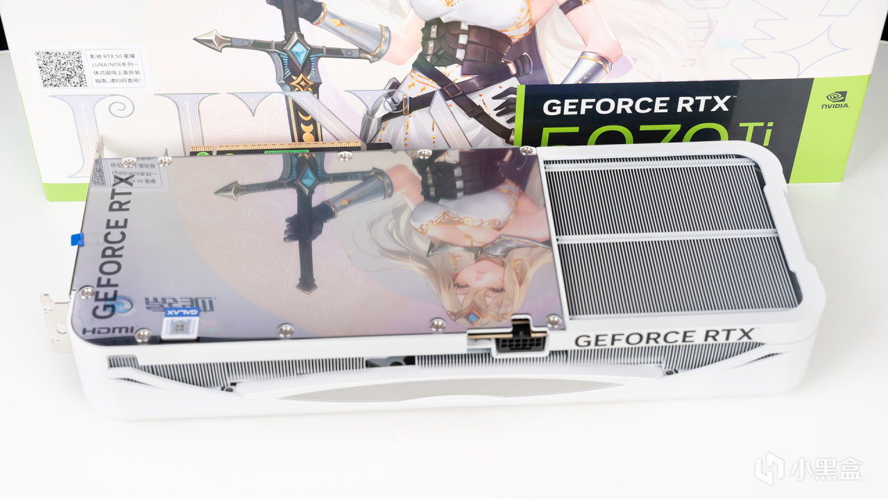 第一款測試顯卡來自影馳的RTX 5070 Ti星曜LUNA OC,包裝上是全新月亮女神LUNA形象IP(白色版本,黑色則爲黑夜女神NOX),顯卡擁有超長的42個月質保,相比其他主流非公會多6個月更有保障,支持個人送保。