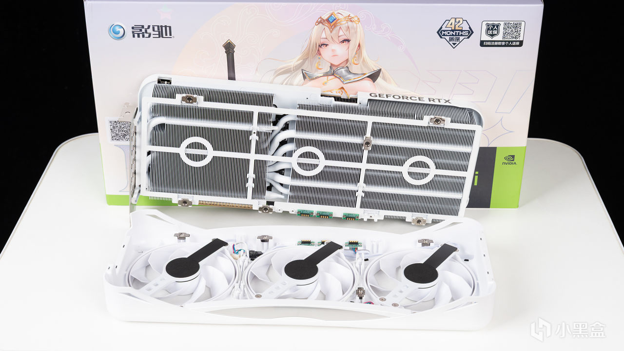 影馳RTX 5070 Ti星曜LUNA OC最爲人性化的設計是快拆結構,上蓋和散熱器/PCB部分利用了多個磁吸點實現快拆,並且風扇供電也是觸點形式實現,對於玩家最大的便利之處自然是清灰。用料方面,顯卡有12層PCB、12+4+3相供電、一體壓鑄中框、4*8mm+3*6mm鍍鎳熱管等豪華配置。
