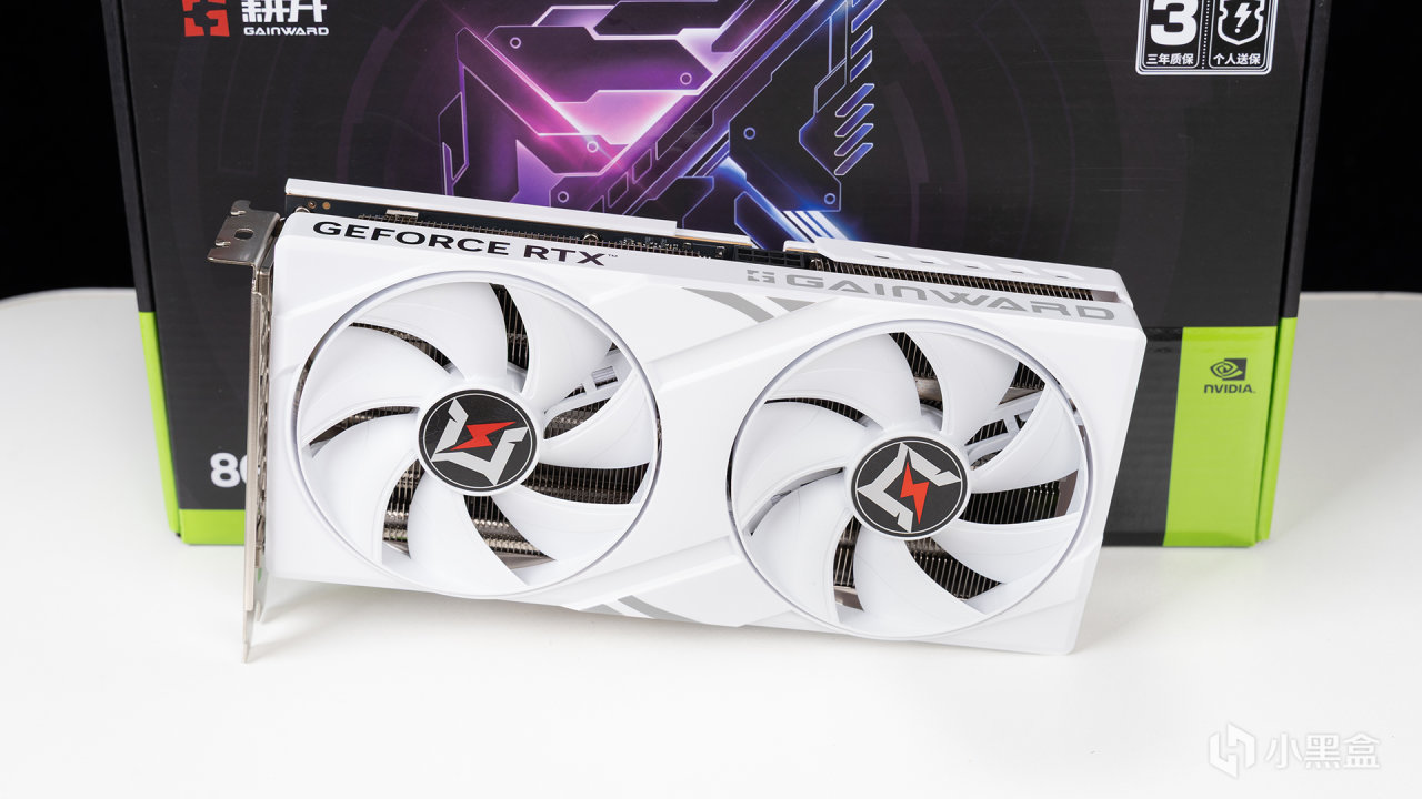 這款顯卡主打是甜點和緊湊,因此裝飾效果也是相當簡潔,側面區域只有GEFORCE RTX和GAINWARD LOGO,加上整體無光的設計,正好可迎合那些口味獨特的ITX玩家。