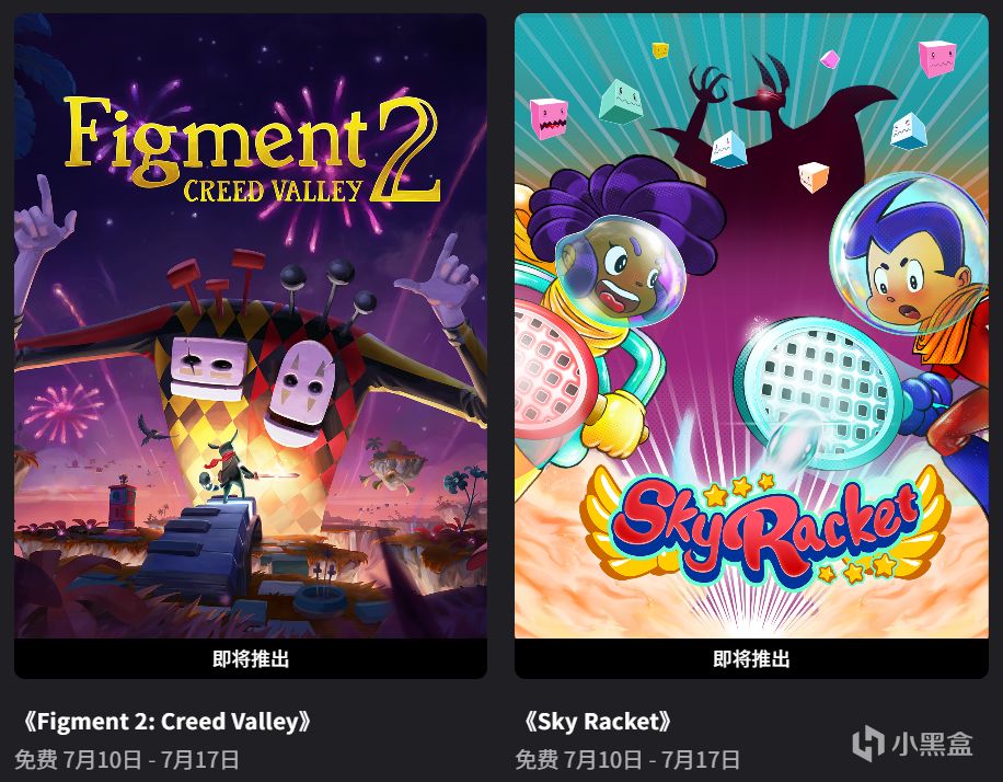 下一周赠送的免费游戏为《虚构2:坚信之谷》和《星空网球》,领取时间7月10日~7月17日