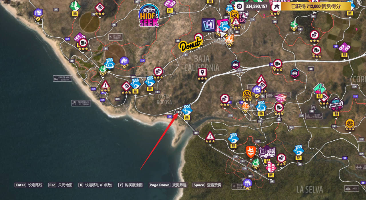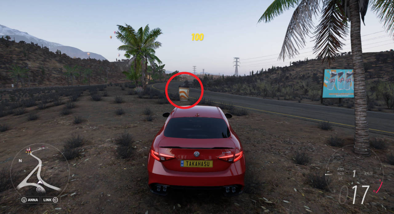 前往高速公路西端的地平線汽與咖啡店破壞10個咖啡杯,位置如圖(在咖啡館周圍),完成獎勵爲“不破壞不罷休!”極限競速LINK獎勵