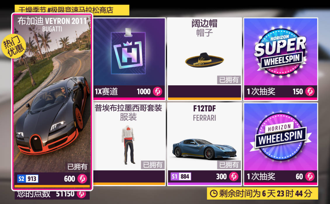 本週更新車輛爲2011款布加迪 VEYRON SUPER SPORT和2015款法拉利 F12TDF。兩輛車都是車展車。