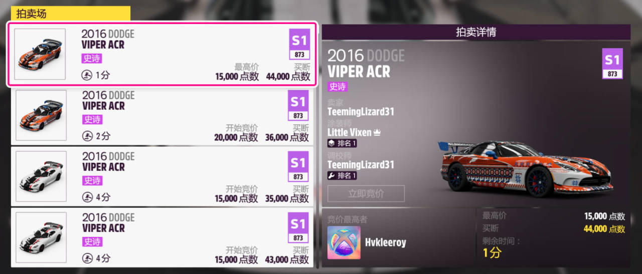 獎勵車輛爲:2016款DODGE VIPER ACR