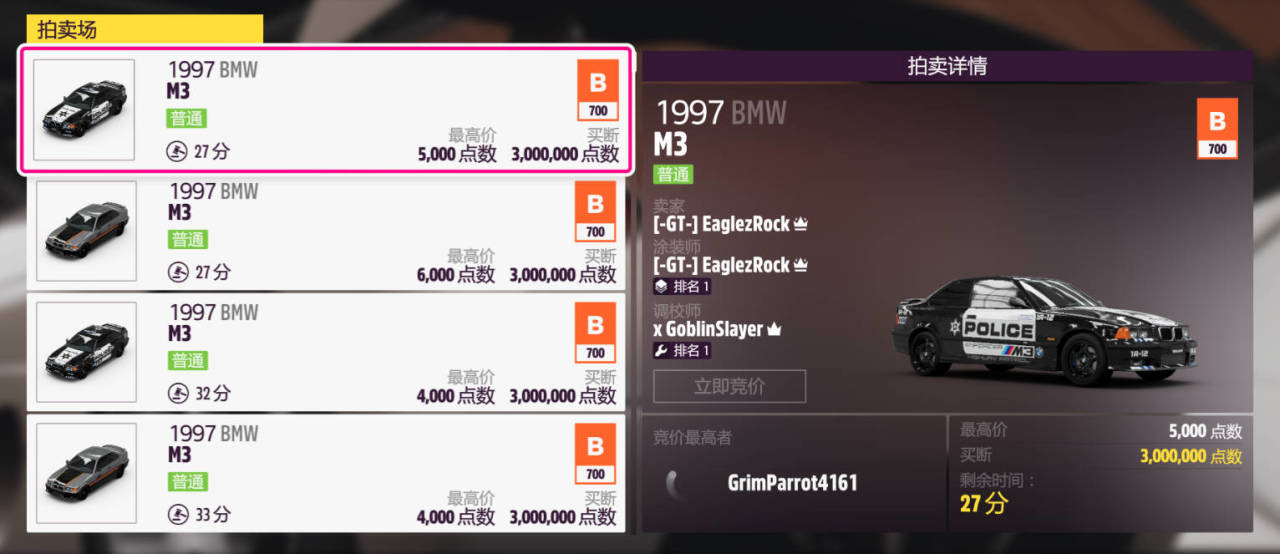 指定車輛:1997款BMW M3(車展,錦標賽二獎勵車輛)