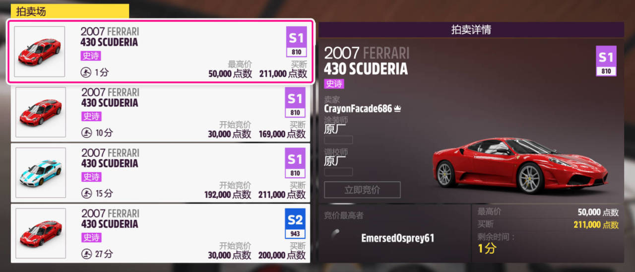 獎勵車輛爲:2007款FERRARI 430 SCUDERIA