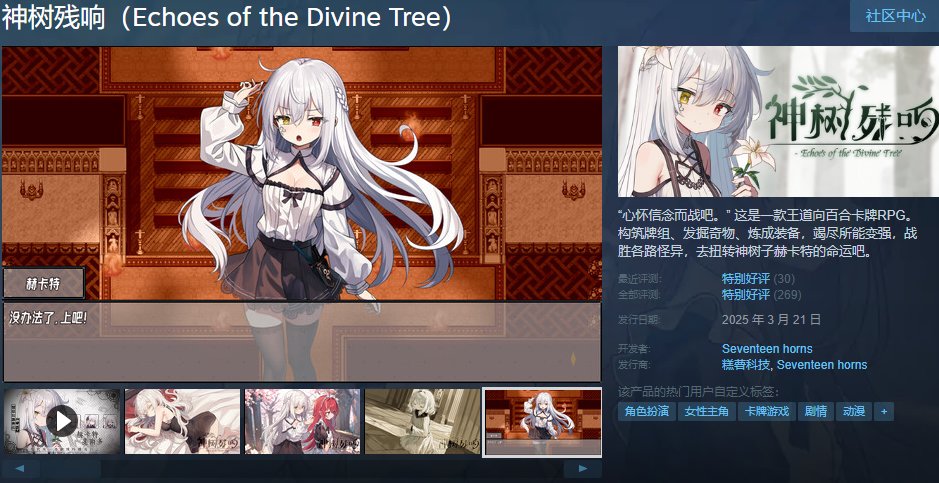 备受好评的卡牌RPG《神树残响》夏促史低43元,白毛黑丝,狙击xp!