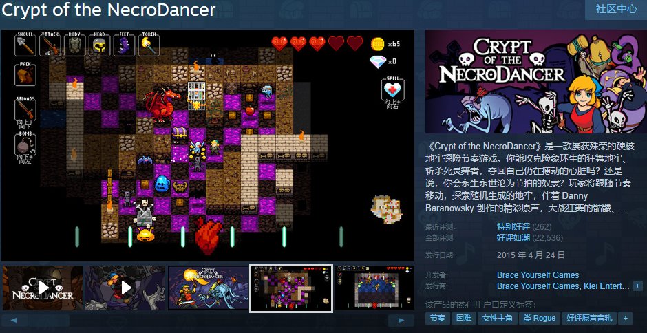 这款于15年发售的神作,即便放到现在也独一无二!跟随节奏行动,百玩不腻的像素肉鸽精品好游戏《节奏地牢》迎来新史低,只要4.8元!值得一提的是,节奏地牢有一款ns独占作品,与任地狱合作,同样非常推荐,塞尔达传说X节奏地牢=《节奏海拉鲁》。不过在那之前,先玩玩节奏地牢叭!