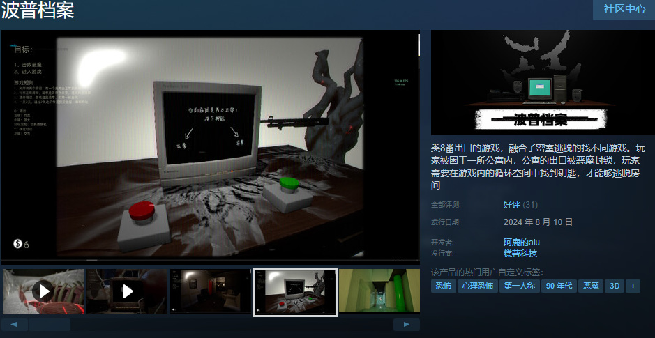 一款类8番出口的心理恐怖解谜游戏,新史低只要7.5元,“一番”不到1元钱。