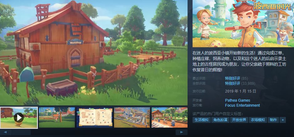 于19年已经发售就大受好评与关注的波西亚时光在夏促平史低2折优惠,不到20元即可拿下。这款经典种田大作在全球模拟经营排名第二,仅次于星露谷。时光系列工坊主的起源故事,玩法丰富,还可以和游戏里的角色恋爱结婚。