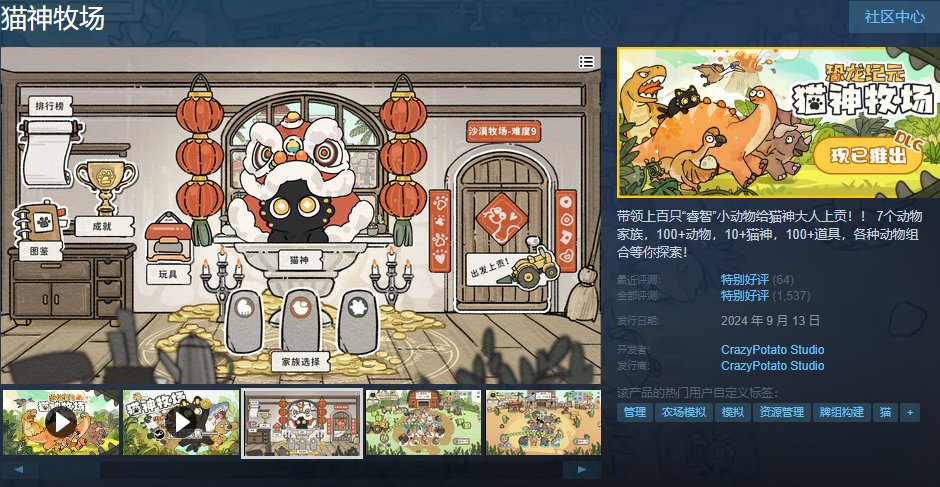 超好玩的幸运房东like《猫神牧场》迎来夏促新史低,7折优惠仅售29元!将Q萌可爱的小动物上贡给猫神大人!