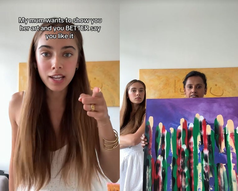 并且,这种表达方式,显然并不局限于女友对男友。其他版本在后来陆续出现,其中令人印象最深刻的,是一名阿拉伯女孩和她的画家妈妈。