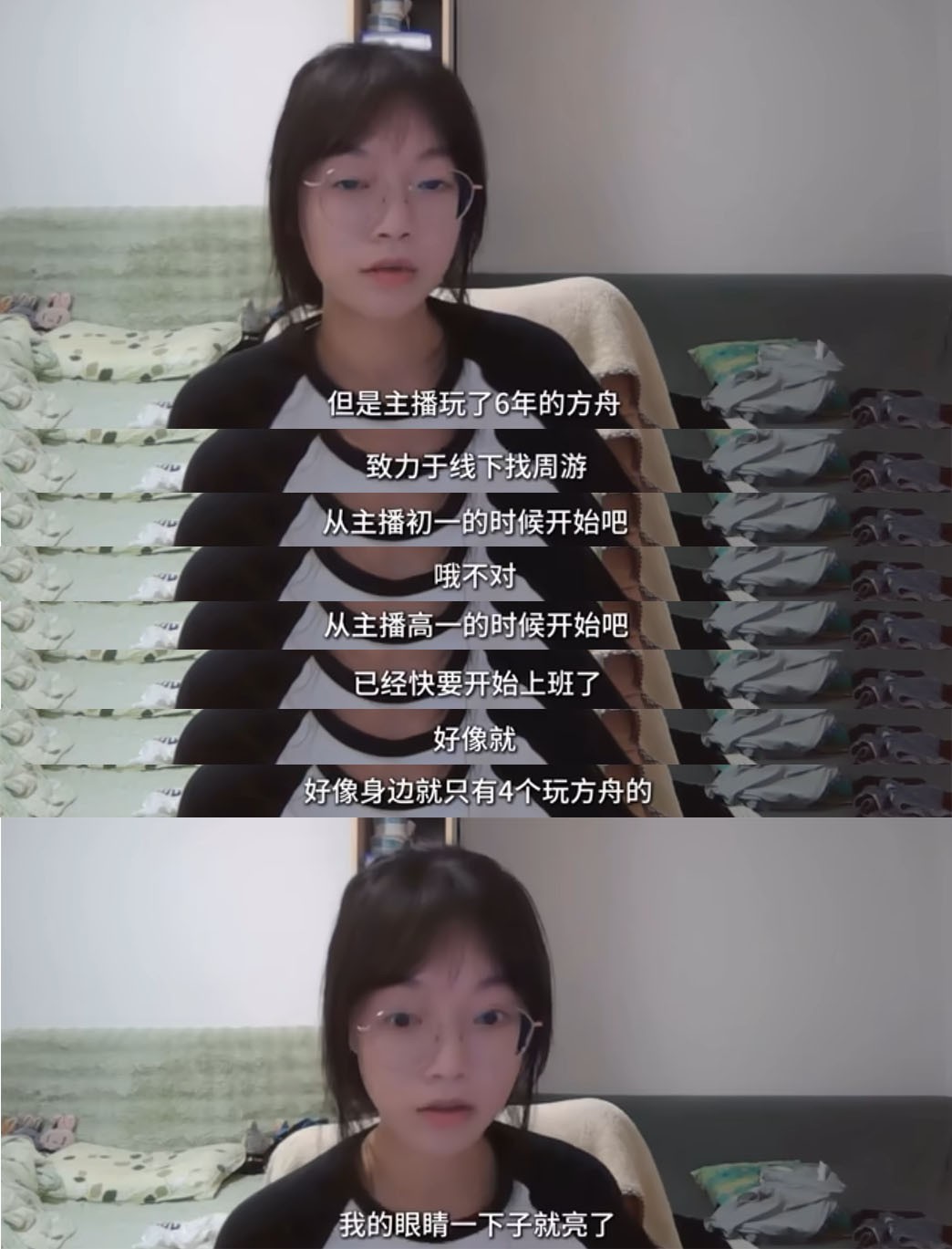 因此我们会看到,前日有个喜欢玩《明日方舟》的主播,因为搭讪《明日方舟》的Coser遭到冷遇,直播间里酒过三巡竟陷入抑郁,便留下:“我的出租屋真的有很多蟑螂,但我不认识几个粥批”的《蟑螂圣经》,引发了全网的广泛共鸣。