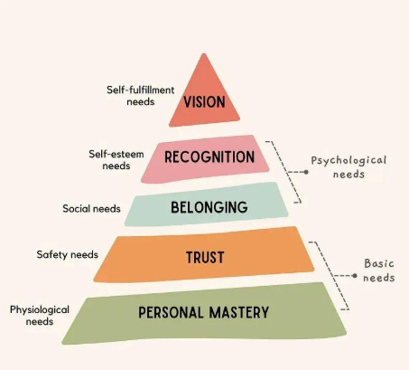 我们拿出马洛斯金字塔,可以看到人类最基础的欲望来自生理需求、安全需求,这或许能解释为什么美貌、多金必然受欢迎,因为她们能带来安全感。但要再往上爬一个层级,那么满足自尊和归属感需求的,恐怕就是“认可”和“共同兴趣”。