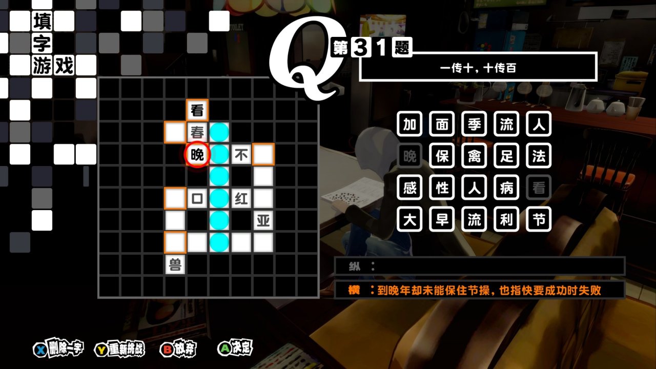 P5R中也有時效性事件,諸如青汁、以物換物、電視購物、字謎等,但均是有固定時間、顯著規律、明確提示的,不容易錯過,且即使錯過也對遊戲體驗無較大影響。P5R的概率性事件就更少了,躲粉筆、彩票、絞刑技能繼承,除了凹面具需要絞刑,其他根本也無需刻意sl,而凹面具也並非必須,所以概率性事件對遊戲幾乎無較大影響。