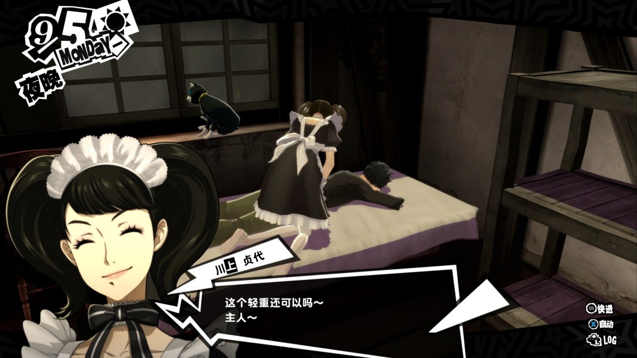 除了避免了上述兩點負反饋,P5R極其豐富的養成事件也是一個極大的優點,COOP、打工、問答、鍛鍊、釣魚、洗澡、爵士、女僕、漢堡等等等等等等,豐富到令我應接不暇、選擇困難、忙得忘乎所以,這是大作級別的體量才能擁有的優勢,是無與倫比的優點。